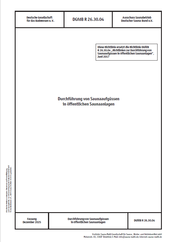 - “Richtlinien zur Durchführung von Saunaaufgüssen in öffentlichen Saunaanlagen” (DGfdB R 26.30.04)